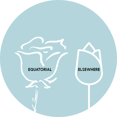 We have searched the globe for the finest equatorial growers. Typically, we find them at least 8,000 feet above sea level, namely Ecuador, Columbia, Kenya and Ethiopia. Here they are exposed to the ideal sunlight and temperature to produce the finest large head roses on the planet, which will be sure to WOW your recipient.